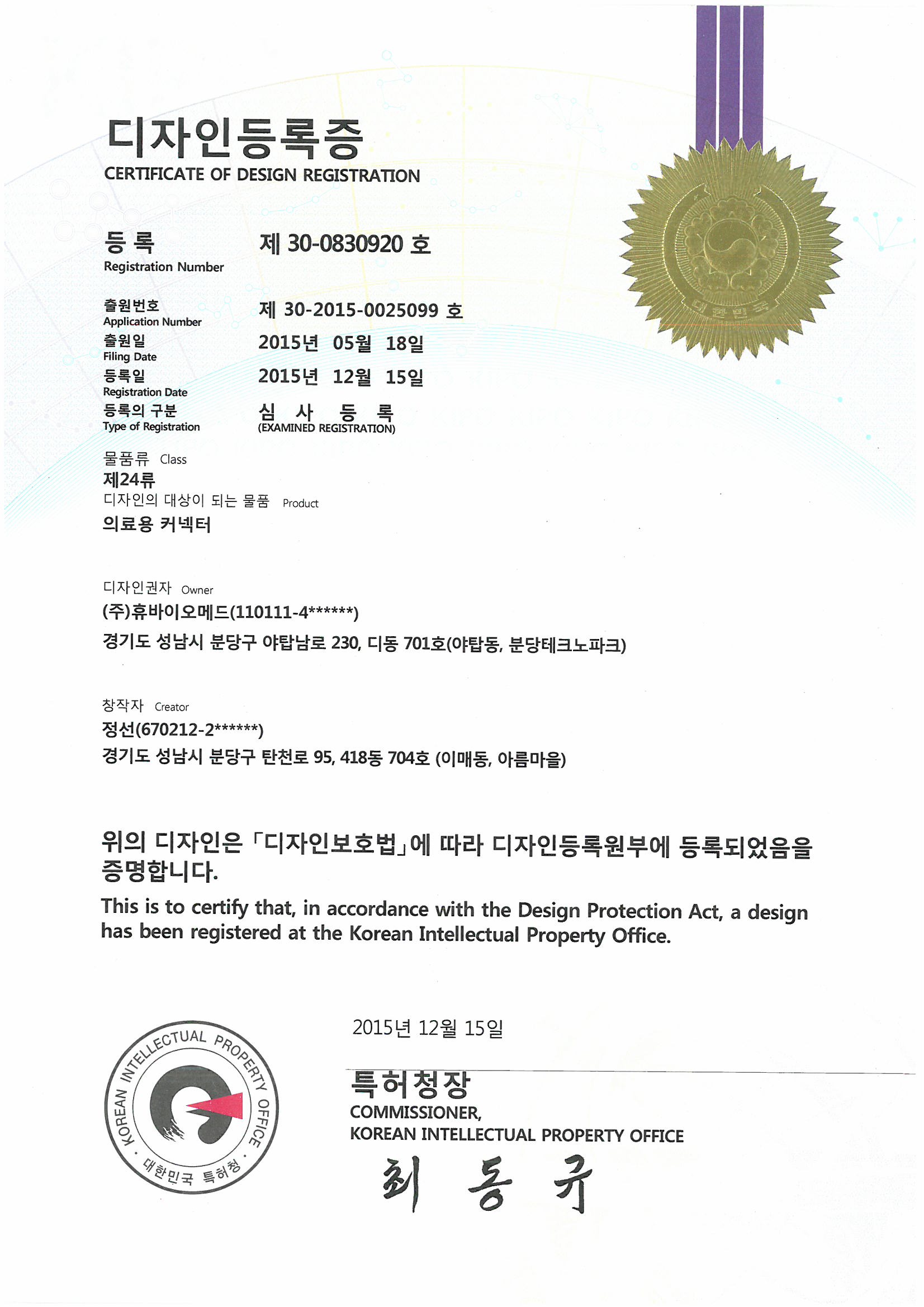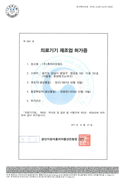 의료기기 제조 및 품질관리 기준 적합 인정서